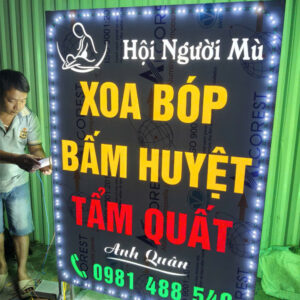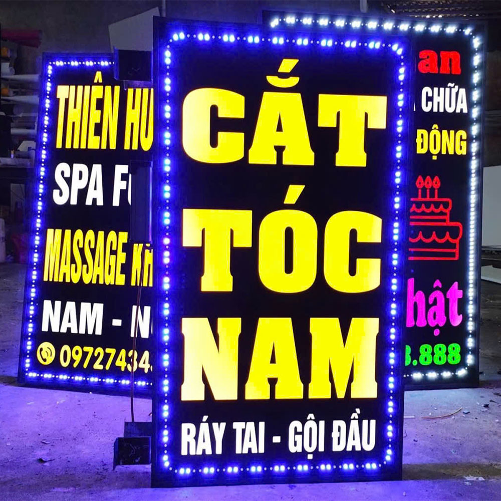 Gia công và lắp đặt: Sử dụng vật liệu bền đẹp (mica, inox, alu…) kết hợp hệ thống LED chính hãng, đảm bảo an toàn điện.