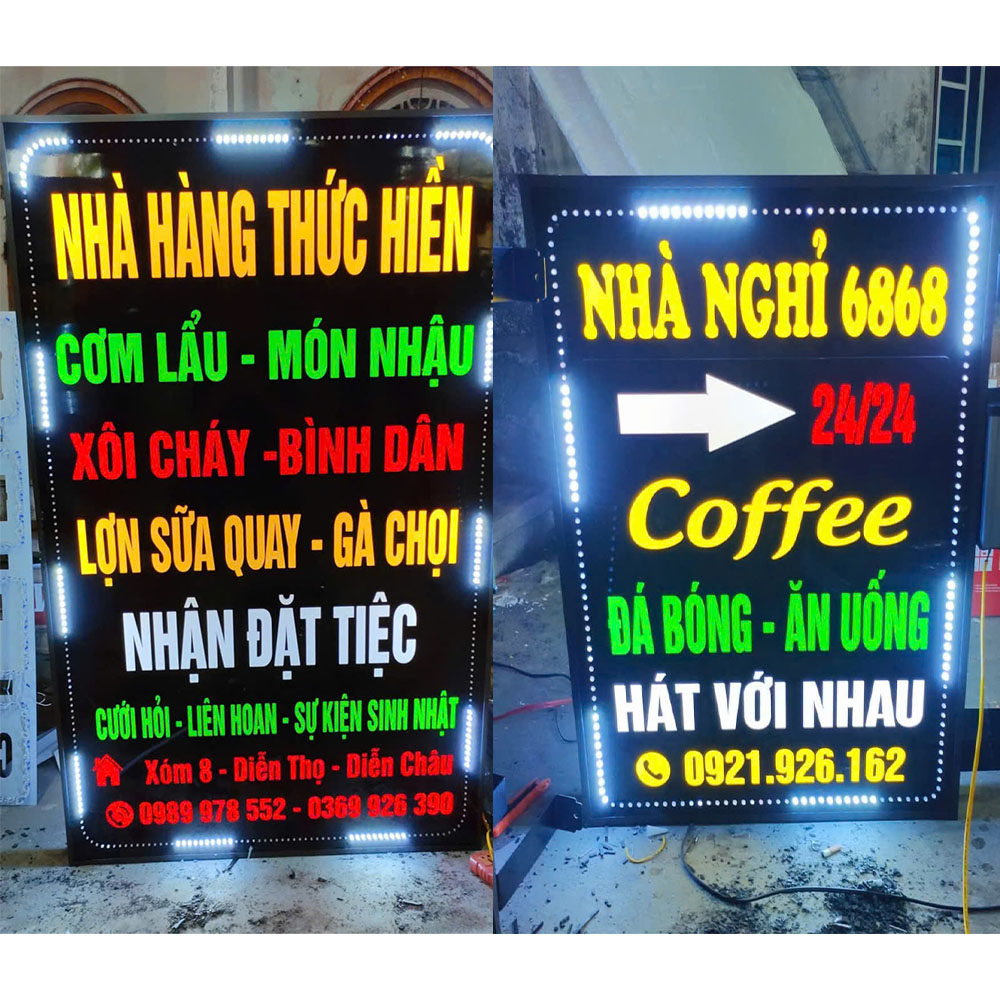 Nhờ hệ thống bóng LED siêu sáng, biển LED ruồi giúp thương hiệu của bạn luôn nổi bật cả ngày lẫn đêm, đặc biệt ở những khu vực đông người qua lại.