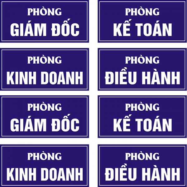 Biển phòng ban là loại bảng hiệu được gắn tại cửa ra vào hoặc trên tường của từng phòng trong công ty, văn phòng, tòa nhà. Biển thường hiển thị tên phòng, chức năng hoặc thông tin cần thiết, giúp phân chia không gian rõ ràng, thuận tiện cho việc tìm kiếm.