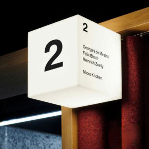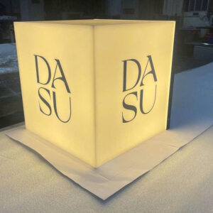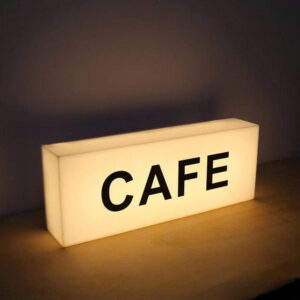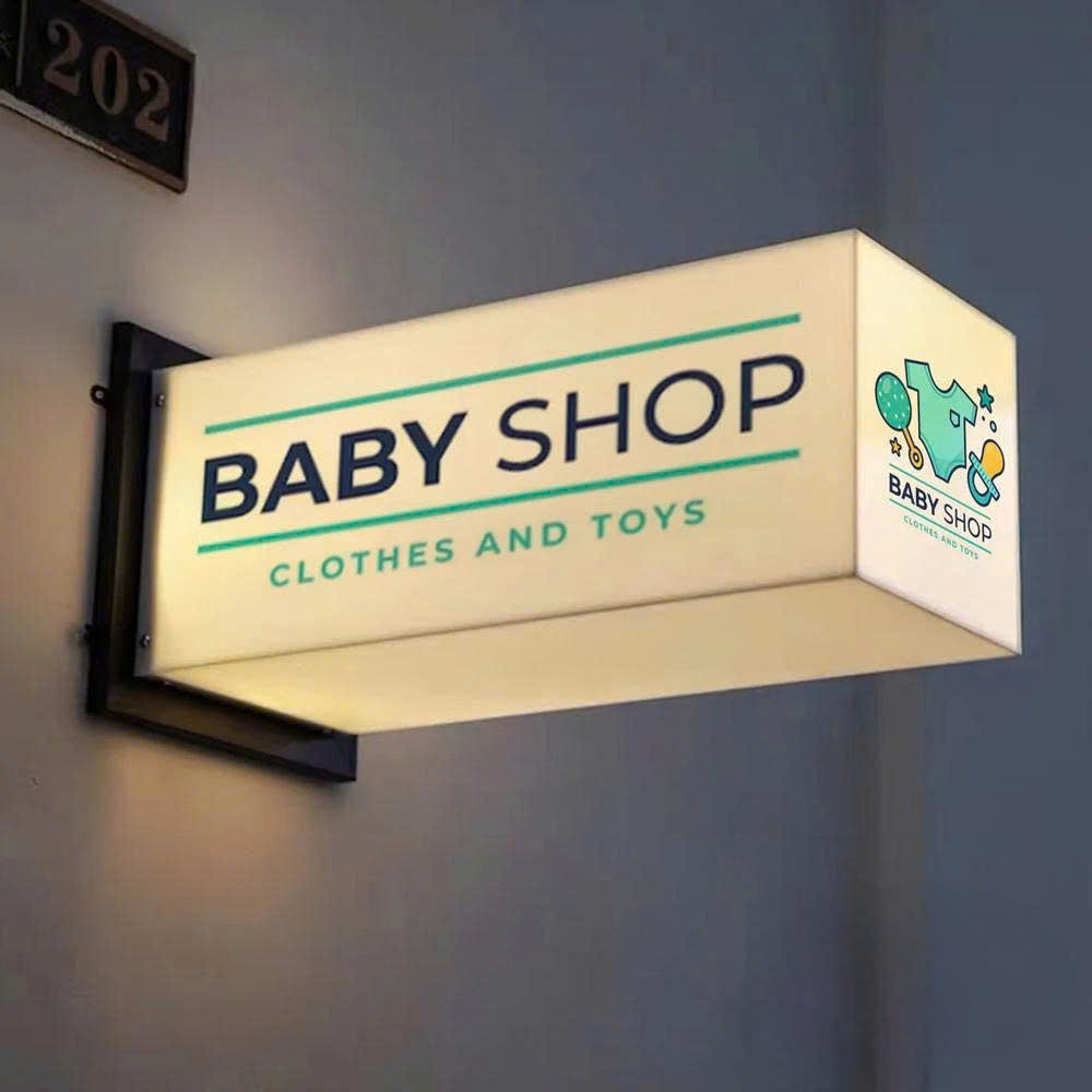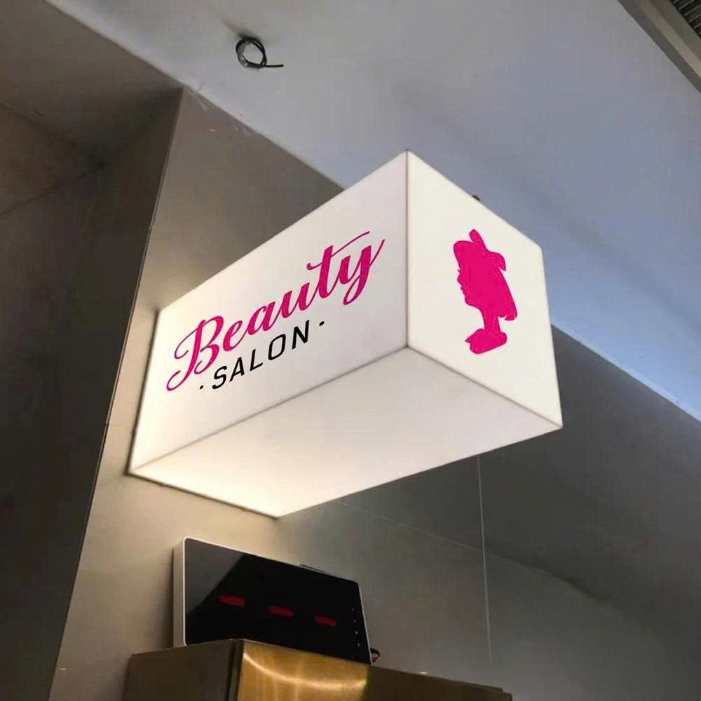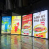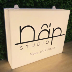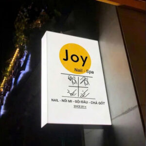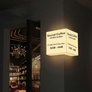 Là loại biển quảng cáo nhỏ gọn, làm từ mica kết hợp đèn LED, thường gắn vuông góc với tường để thu hút khách hàng.